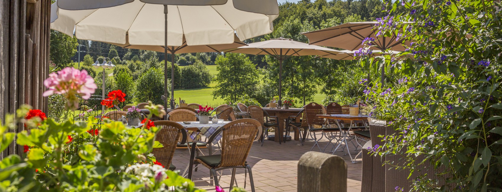 Genießen Sie einen Cappuccino auf unserer Sonnenterrasse, eine deftige Brotzeit in unserem Biergarten oder regionale und saisonale Gerichte in einer unserer gemütlichen Stub’n.